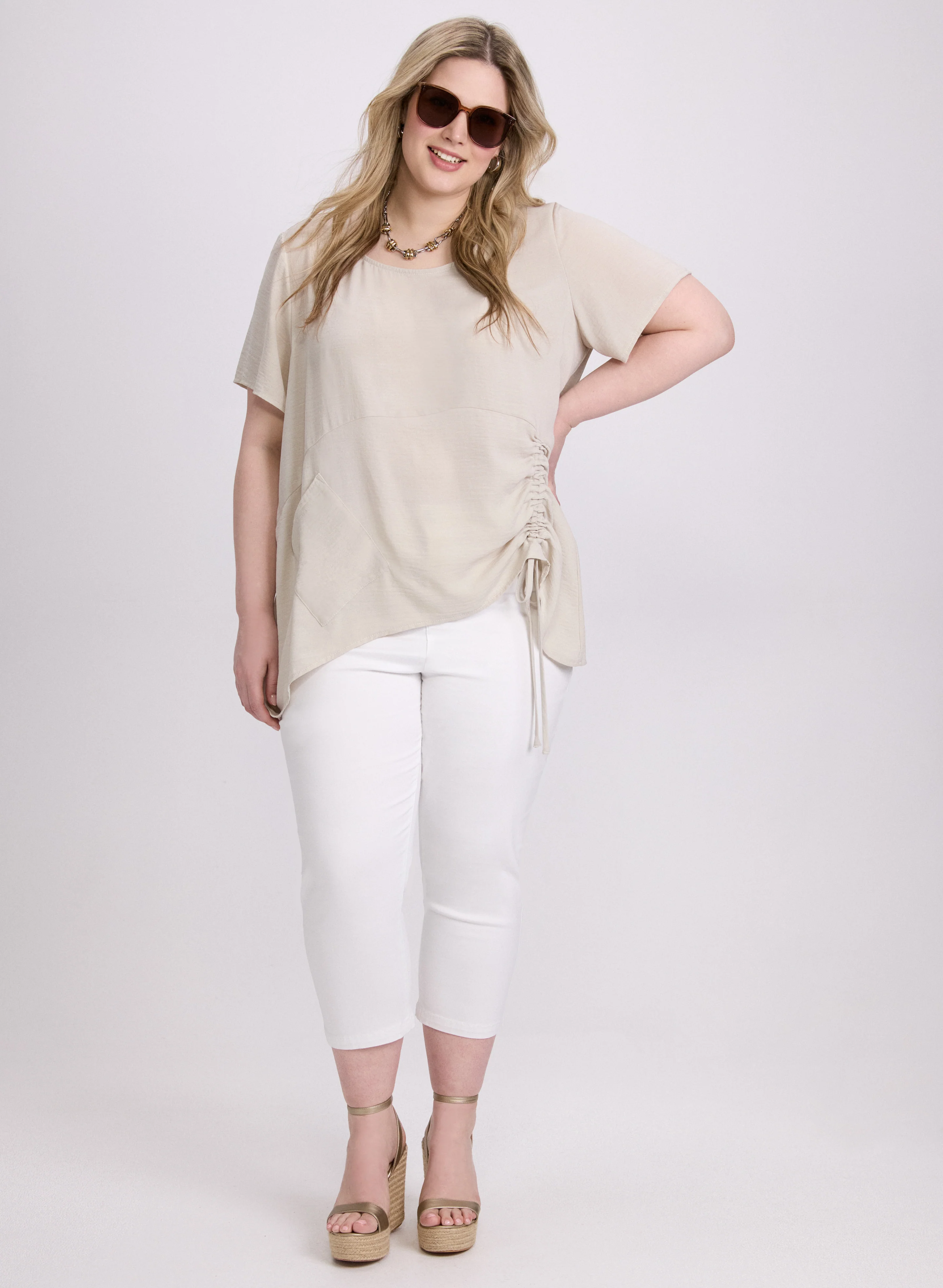- Ruched asymmetric hem with drawstring