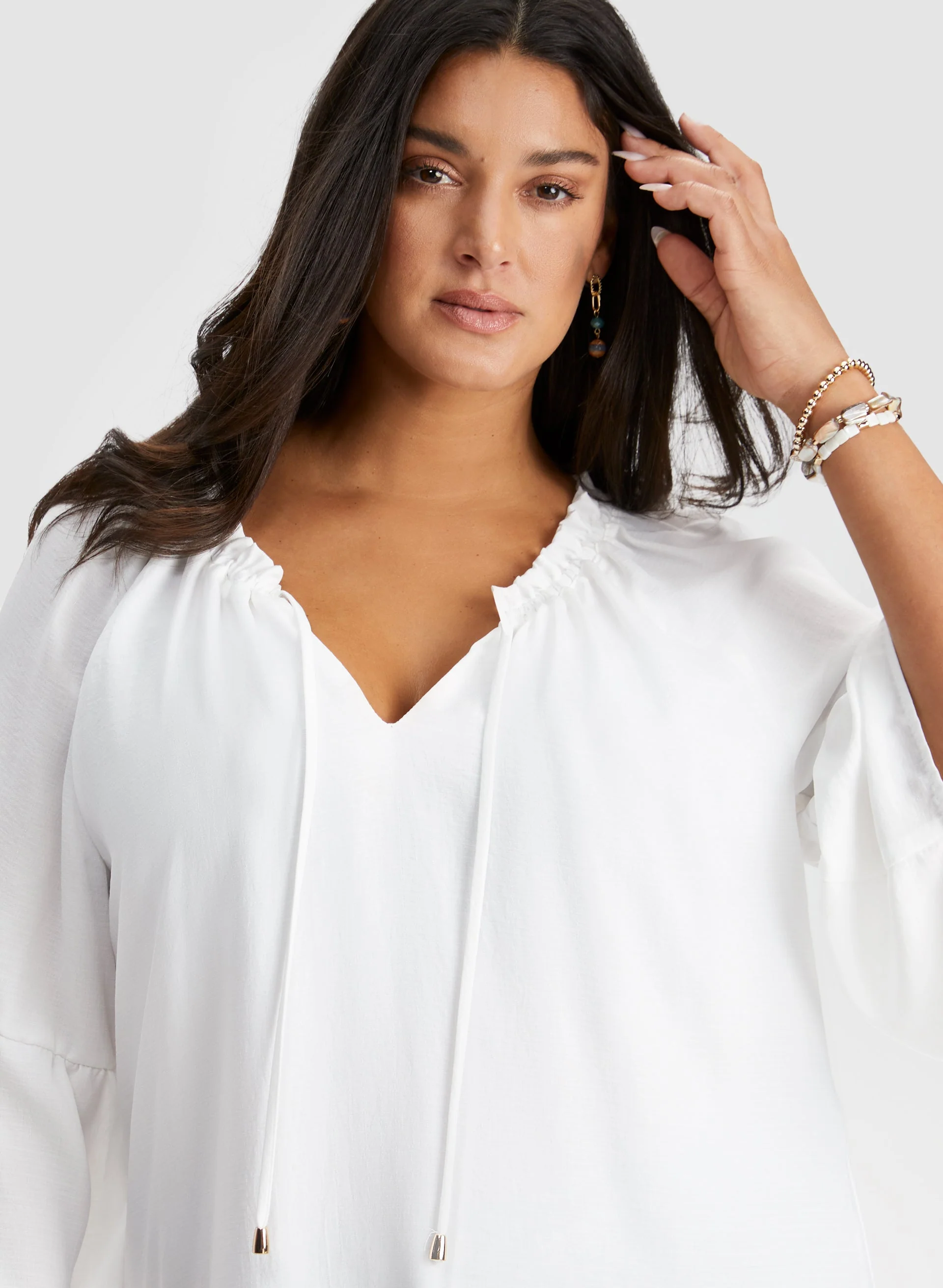 - 3/4 flared sleeves