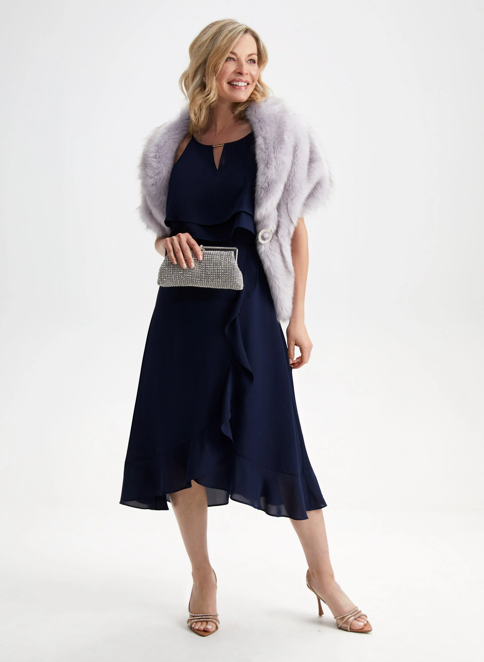 When you need an extra layer of warmth and class for your evening attire, this rhinestone clip faux fur stole will do just the trick.